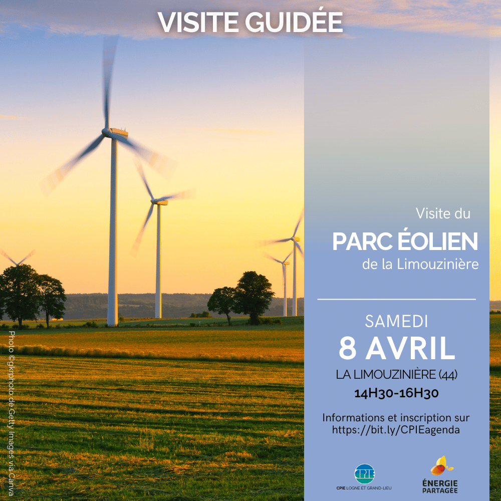 Visite du parc éolien citoyen de la limouzinière, une production locale, renouvelable et partagée de l'énergie sur notre territoire. Partez à la rencontre des géants balayés par éole. Au cours de cette balade dans le parc éolien citoyen situé au cœur du bocage vous pourrez découvrir les éoliennes, en comprendre le fonctionnement, évaluer les impacts positifs ou négatifs de nos modes de production énergétique.
