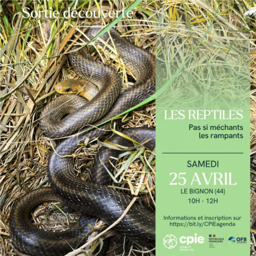 La commune du Bignon et le CPIE Logne et Grand Lieu vous invitent à une sortie nature pour partir à la rencontre des reptiles ! Ces animaux mal aimés sont pourtant fascinants de par leur écologie, et ont aussi leur rôle à jouer dans l’écosystème. Cette sortie sera réalisée sur l’exploitation de Marie Boucher, productrice d’herbes aromatiques sur la commune, en partenariat avec la LPO 44.