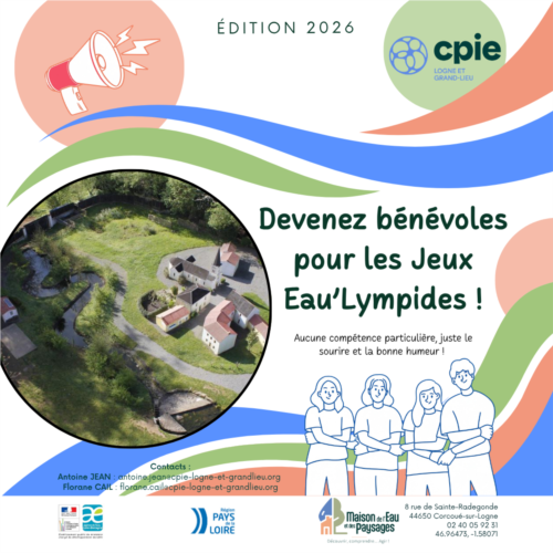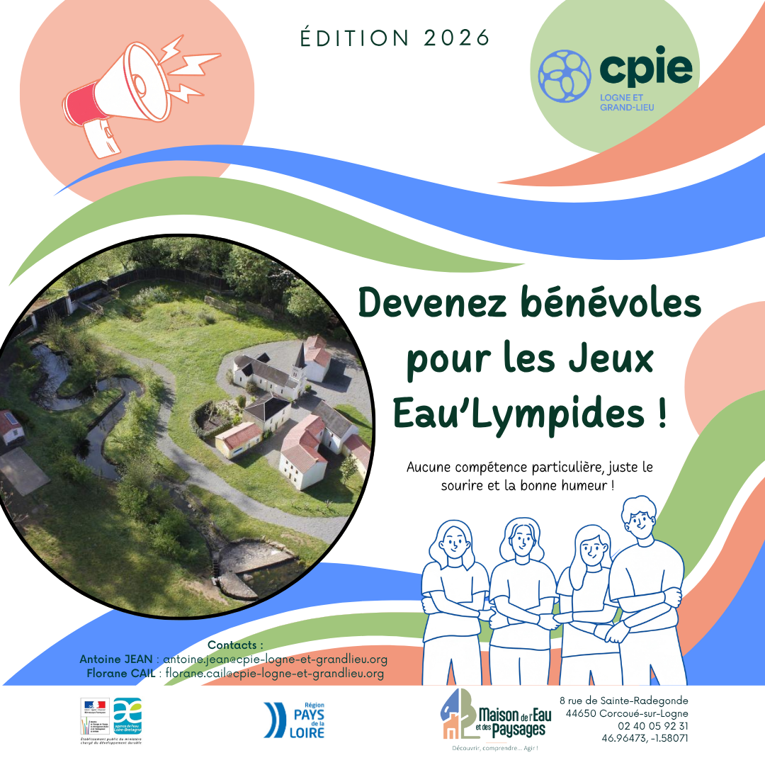 Nous recherchons des bénévoles pour "les Jeux eau'lympides".Tous les mercredis des vacances scolaires estivales, le CPIE accueillera à nouveau les Jeux Eau’Lympides sur le site de la Maison de l’Eau et des Paysages ! Afin de préparer au mieux cet évènement, nous sommes à la recherche de bénévoles pour nous aider à installer les défis, accueillir le public, animer et accompagner le public avec le sourire, imaginer de nouveaux défis etc. Si vous êtes intéressés, ou si vous avez besoin de plus d’informations, n’hésitez pas à contacter Antoine (antoine.jean@cpie-logne-et-grandlieu.org ou Florane (florane.cail@cpie-logne-et-grandlieu.org)! Aucune compétence particulière, juste le sourire et la bonne humeur sont demandés !
